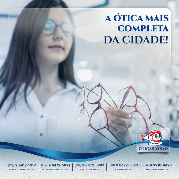 👓 Na Óticas Visão, a sua satisfação é nossa prioridade! Somos a ótica mais completa da cidade, oferecendo uma ampla gama de produtos e serviços para cuidar da sua visão de forma excepcional. 👁️💯
